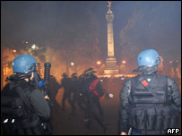 El a precizat că eforturile împotriva încăzirii globale vor fi o prioritate pentru Franţa. Nicolas Sarkozy a mai precizat că va promova drepturile femeilor şi ale celor dezavantajaţi. El a făcut o referire specială la cazul asistentelor din Bulgaria închise de mai mulţi ani în Libia, subliniind că Franţa nu le va abandona. În cursul serii, demonstranţi de stânga s-au ciocnit cu poliţia la Paris, Lyon, Lille, Nantes şi Rennes. În Piaţa Bastiliei au avut loc ciocniri între scutieri şi tineri manifestanţi anti-Sarkozy, în care au fost flosite gaze lacrimogene. | LEGĂTURI Vot la Bordeaux, unul dintre cele mai importante oraşe 06 Mai, 2007 | Ştiri LEGĂTURI LA SITE-URI EXTERNE BBC nu este răspunzător de conţinutul paginilor de Internet ce nu îi aparţin | |||||||||||||||||||||||||||||||||||||||||||
