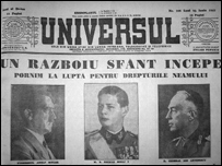 Primele transporturi: Arad, Timişoara şi Turda. 17.000 de evrei urmau să fie scutiţi, 300.000 – nu. Planul nu mai fost pus în aplicare. Îmblânzire, reacţie faţă de protestele liderilor opoziţiei şi ale reginei Mame? Mersul dezastruos al campaniei din Răsărit şi revelaţia că Germania poate la urma urmelor să nu câştige războiul? În octombrie '42, guvernul decide şi încetarea deportărilor în Transnistria şi suspendarea planului Belzec. Legătura dintre cele două devine limpede abia când CFR-ul scrie la cabinetul Antonescu, întrebând ce se aude cu deportările. Răspunsul e: “În Consiliul de Miniştri de la 13 oct 1942 au sistat deportările de evrei.” Totuşi, abia la 20 decembrie 1943, primul grup de 1.500 de evrei din Dorohoi va părăsi Transnistria. Câteva luni mai târziu, în jur de 1.900 de copii evrei orfani vor fi transportaţi prin România şi vor porni către Palestina. Istoricul Mihail Ionescu are următoarea explicaţie pentru această schimbare de politică: “La sfârşitul anului 1942 şi începutul anului 1943, Antonescu îşi dă seama că Germania poate să piardă războiul şi-n consecinţă începe să utilizeze ca monedă de schimb cu Aliaţii occidentali soarta populaţiei evreieşti din România." Mulţumim Arhivei Naţionale de Filme pentru materialul audio pus la dispoziţie şi Bibliotecii Academiei Române şi Muzeului Holocaustului de la Washington pentru permisiunea de a publica imagini din colecţiile lor. Serialul "Ion Antonescu şi asumarea istoriei" se difuzează sâmbătă, la ora 14.00 şi în reluare duminică, în transmisiunea de la ora 21.00. Aşteptăm comentariile dumneavoastră la rom.dept@bbc.co.uk Graniţele României la 1942