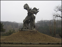Discuţia noastră se sfârşeşte lângă o altă statuie. Ea se află la Chişinău, undeva la Poşta Veche, şi îi comemorează pe evreii executaţi aici, în 1941, îmi explică Şabs Roif care conduce Asociaţia Supravieţuitorilor Deportărilor. Monumentului i-au fost distrus unele detalii, de “vandalişti”, spune domnul Roif, “şi, de asemenea, placa pe care a fost scris ce reprezintă. Noi, acuma, avem altă tablă, însă o aducem aicea când facem întâlniri, mitinguri în amintirea morţilor. Aducem tabla, o punem, şi pe urmă o luăm înapoi, deoarece ea poate fi iar nimicită.” |