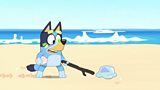 Mae Mam yn mynd am dro ar ei phen ei hun ar hyd y traeth ac mae Blwi yn rhedeg i geisio...(A)