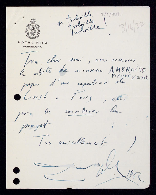 Letter from Dali to Dr Honeyman - © Fundació Gala-Salvador Dalí