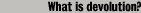 |  |  |  | What is devolution?Devolution refers to a transfer of power. It is when one parliament gives up some of its power to another organisation like a regional parliament or a local government. In 1997, the UK Parliament transferred some power to the Parliament in Scotland; this means that Scotland has some self-government.