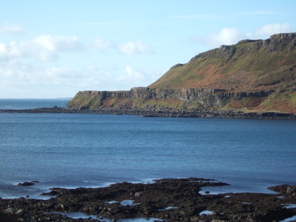 Looking out towards the headland - you can see the raised beach quite clearly here - it is like a level platform all the way round the bay.