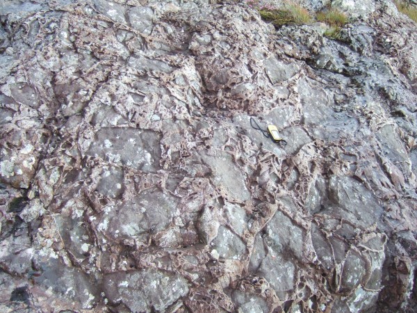 What's a pillow lava? Well, to put it simply, if lava gets erupted under water, either in the sea or into a crater lake, it cools quickly and forms distinctive round pillow shapes. These are found in central Mull in various places and have been used to deduce the presence of a large crater lake way back in Tertiary times.