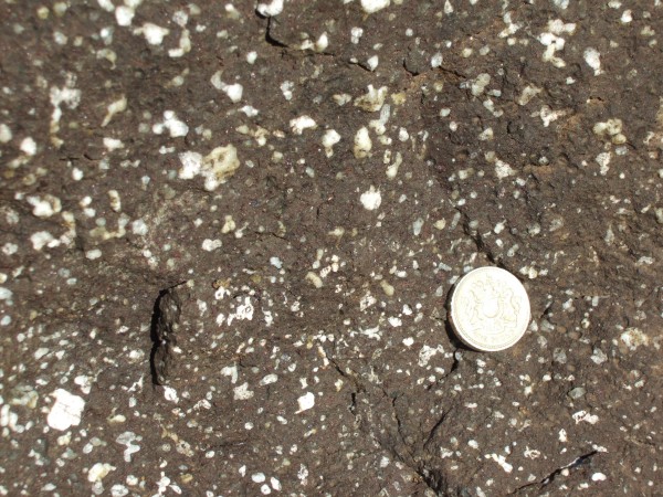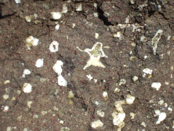 A lot of the rocks are full of white crystals, mainly what are called zeolites. Whole areas of rock can appear spotted: