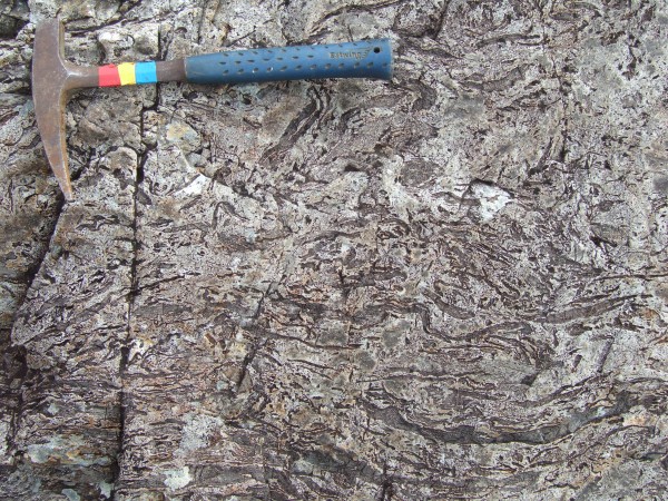Heading back the way,the psammites show very clearly their sedimentary origin. The various layers are very obvious: