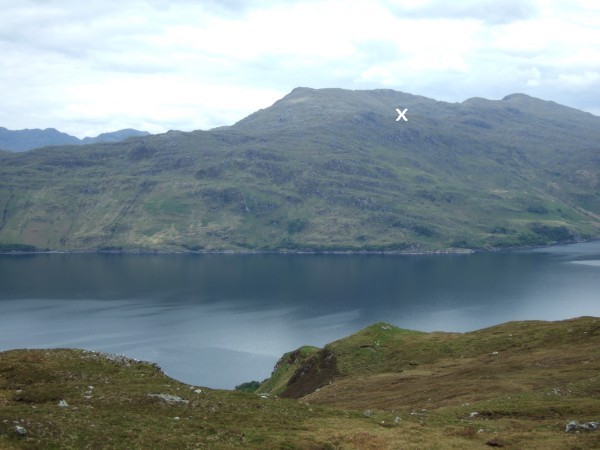 And this pic shows the mine location, across Loch Nevis. The white cross is the approximate site.