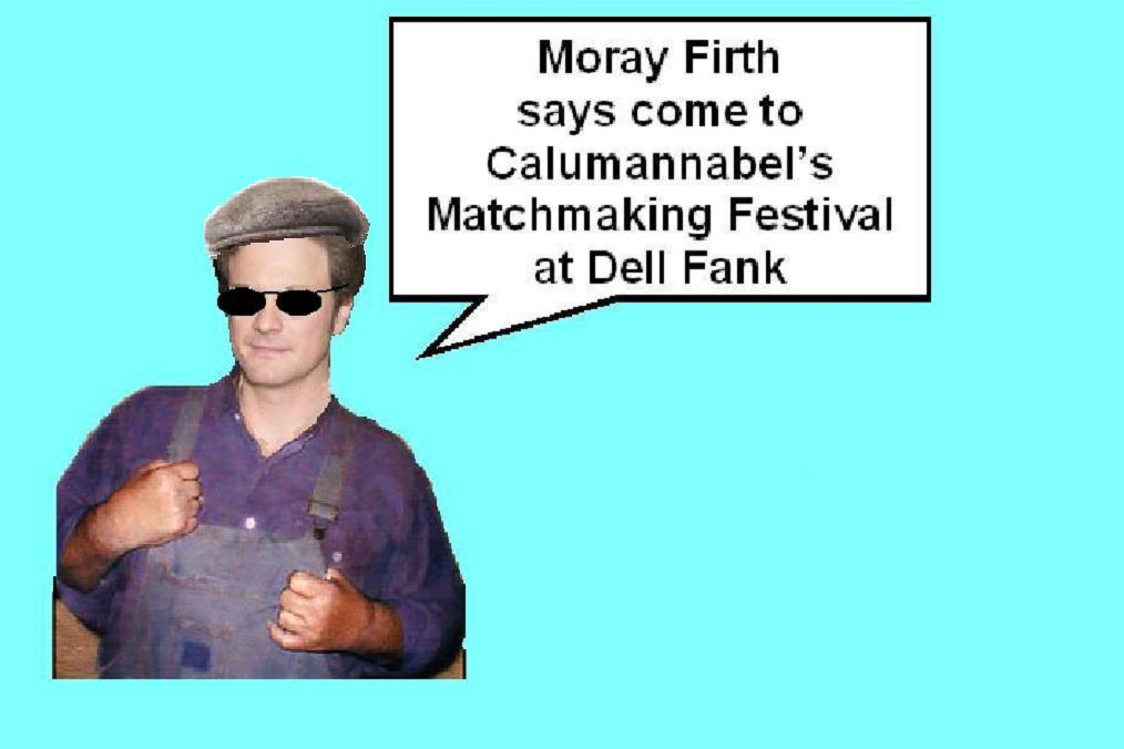 I found out where Colin Firth's brother Moray lives!! Seemingly Chrissie Mary's cousin Effie in Ullapool knows his sister-in-law's butcher. It's a pity that he's moving house and changing his phone number as soon as he can, but he agreed to send this lovely picture to support the Festival. Who's got a fried tattie stick on their shoulder now then?