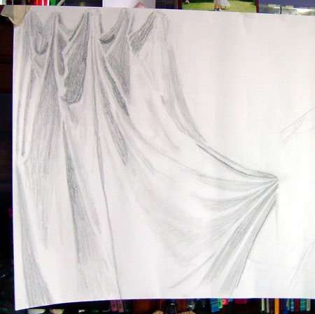 The figure drawing ~ well 2 weeks ago the tutor had pinned up some fabric and I drew the fabric instead of the figure,