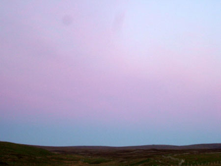 Earlier this week when the sunset the sky over the moor at the back turned pink, what is interesting is it is south east and the sun was setting in the west so it is a reflection, I can only think there must have been a mist rising over the moor,