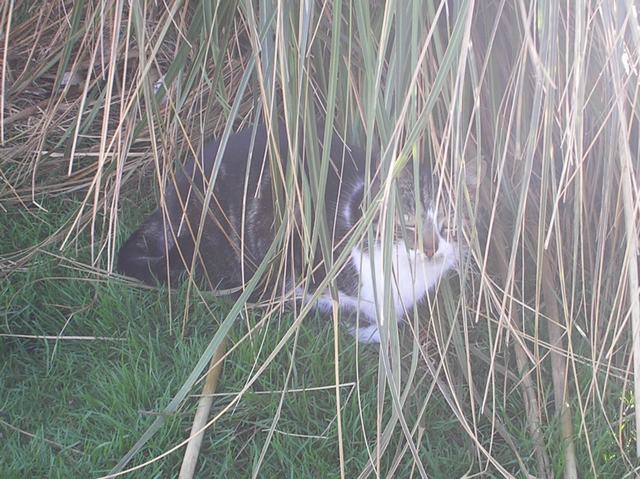 In the middle of the Pampas Grass the cats have made a small flat area which is hidden from the outside world and there they sit waiting.