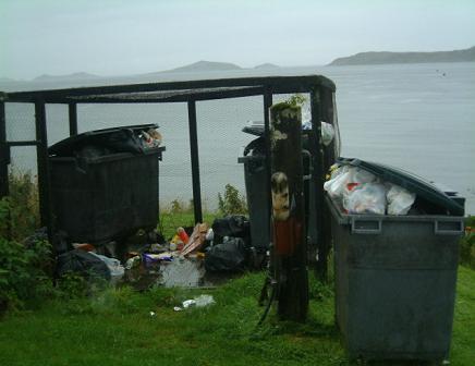 The Government have stated that appox 50% of all waste COULD be recycled, so what do Argyll and Bute Council do? They enforce us to recycle 50% of our waste, they do this by cutting collections of waste to every other week. We have no general dump (Oh, the Council say we can take any excess waste to the dump on Islay but we have to pay the sum of £13.00 - on a council owned ferry), we have no skip, so what do people do?