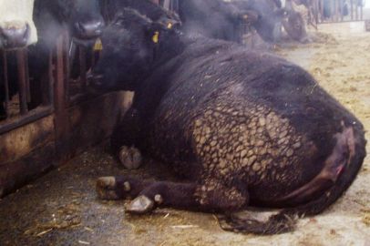 This is the poor lass with the trapped nerve. She's a tame coo and won't be much of a hassle to relocate to a comfortable pen.