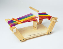 After my first visit I purchased a small child's loom so I could give this weaving stuff a try. I was living in a wee cabin in Alaska so I did not want to buy a big loom - plus, why make such an investment when you don't even know what you are doing?? It is a very simple loom so even though I enjoyed weaving I did not gain any real weaving experience. This is a photo of what it looks like: