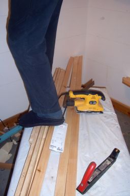 So...Erlend slaves away all day and half of the night on the farm - and then comes into the house and works hard at putting up wall-to-wall shelving in our middle bedroom!