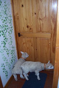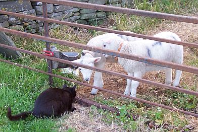 When the two lambs were born Zeb snarled at them and harassed them until the yow became a nervous wreck. So I scolded him away from the pen. Instead of returning to the cat oggling Zeb proceeded to follow me around the byre screeching and wailing at me because he couldn't bother the lambs! I couldn't believe it!! This is the kind of stuff a spoiled 2-year-old child would pull! And here was a DOG harassing me and trying to bully me into letting him have his way!