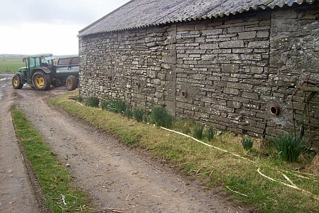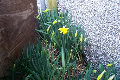 The first daffodils on the farm! They were found sheltered between the hoose and a gate.