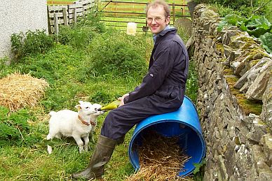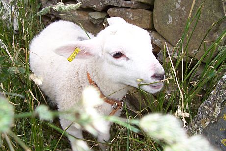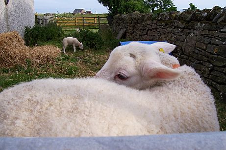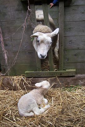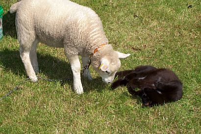 Elsie keeps a keen eye on the yow lamb - but the lamb refused to hold still and stay put!