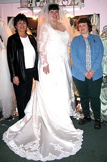 Aunt Diane, Me, Aunt Deb at my wedding gown fitting in America.