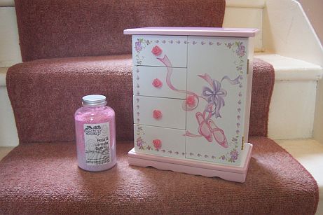 Erlend bought me these rose and lavendar bath fizzies and this MUCH needed lovely jewelry box. He also bought me chocolates!
