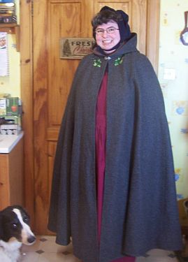 So, I'm trying to stay warm without having the heat cranked and using up too much oil and energy. A few months ago I bought a variety of layerable upmarket shirts and pants and long under things so that my clothes would last (I figured they would be of better quality then the last batch of clothes that fell apart in two months flat...) Well, my efforts were in vain because now I look like a Hobo. So: I bought a cloak for warmth and for something to hide under...
