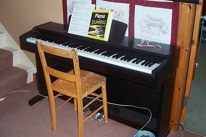 Here's the piano my handsome farmer bought me for Christmas! The keys are weighted like a real piano and it does not have all those fancy frills like most keyboards. It's just a piano!! (Wow...two rosaries in one photo. If I keep this up I'll soon have my own church!!)