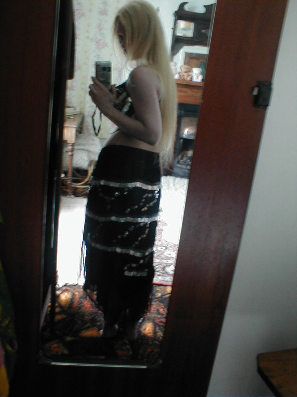 Gonna work on a tribal/gothic costume next though, love that `I flung everything at it` look. :-) Will be making my own wool hair falls though, and have yet to learn how to tie the scarves around my hair without them falling over my face halfway through dancing....someone kindly suggested pinning dangly earrings on them so will try that.