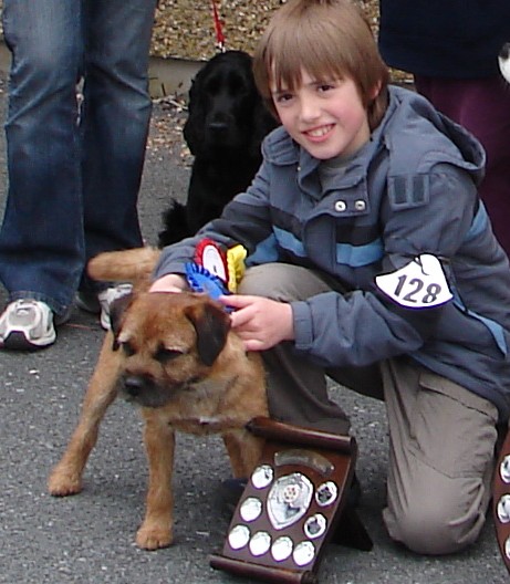I went to a dog show at the Marts in Lerwick on Sunday 15th June with my dog Shadow. He is a border terrier. I came in 2nd at terrier class, 1st in Junior Handler, 1st in happiest face and waggiest tail. I got a scroll shield.