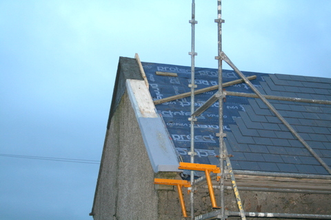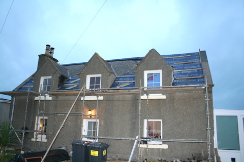 Here's the back completed, they are well onto the front now......again weather's not been to good sleet and rain only 5 degrees temp, so quite nippy. But again these guys are working very well.