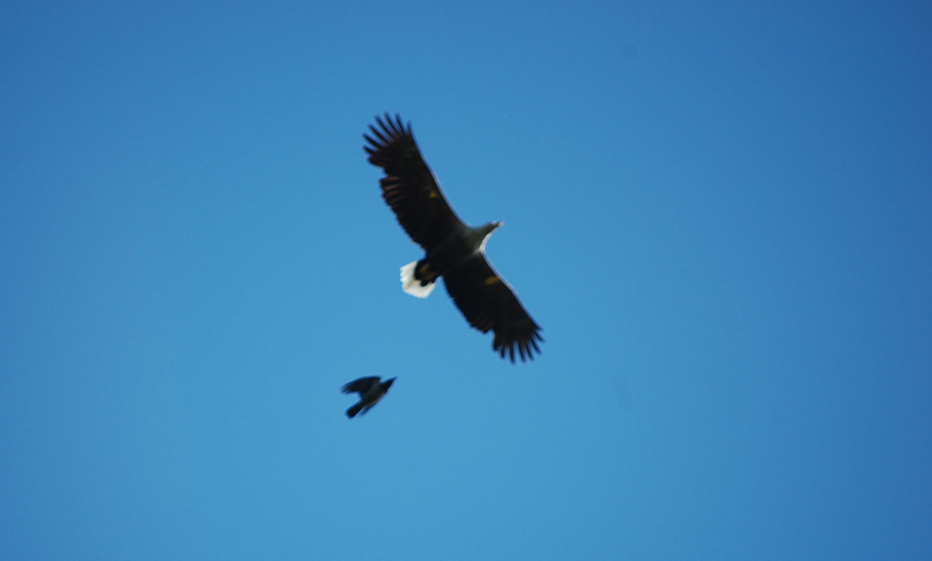 Great photos, WF, the harbour looks super with all the boats and flags. The new building is very nice and fits in well, I think. Great views from that big window! And loved the eagle photo, that's a very brave crow!