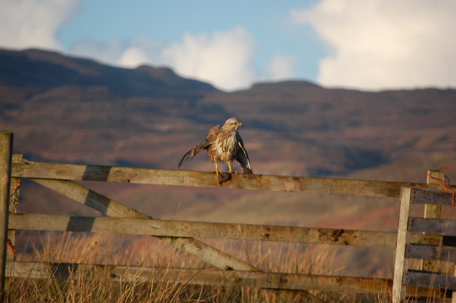Buzzard with mantled wings - cant quite see whether he/she has something between the claws!