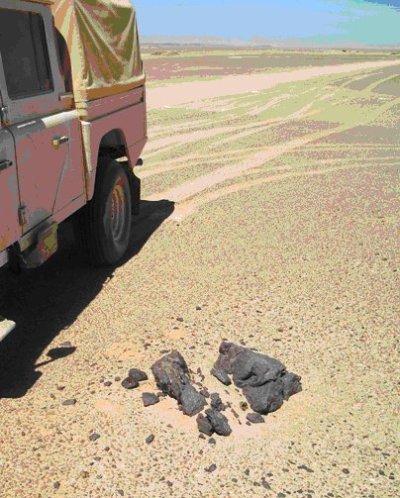 As I am sure you know, that if you look up in the sky at night ( weather permitting) and you see a "Shooting Star" that is a meteorite falling to earth. They are usually bits off a comet that has passed too close to our sun ( not the newspaper, but that big yellow thing in the sky, well it was yellow the last time I saw it, I'm going on memory now, which isn't all that good) and get burnt up whilst entering the earths atmosphere, but little pieces are usually found in the deserts.