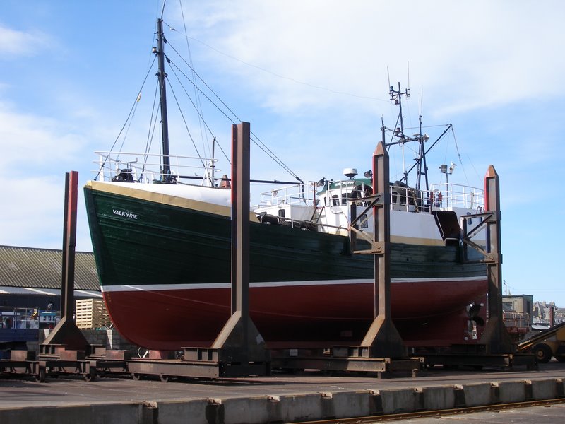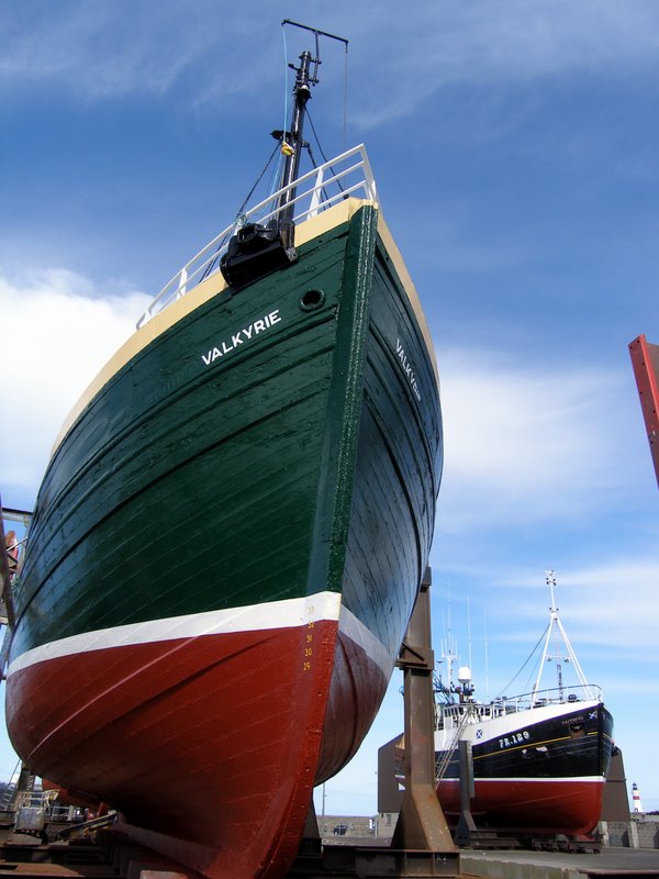 The Valkyrie has not always been called as such, but has had two previous names – the Bounteous Sea immediately prior to us buying her, and before that the Honeydew. Based in Fraserburgh i wonder how many times she had made the journey past the lighthouse on the end of the breakwater and how it would feel for such a grand old dame to be back in her old haunts. Irony had it that in her hey day she was the highest earning boat out of this port, and one berth behind us on the slipway was the current highest earner – the Valhalla. It seemed that so many people knew our boat, had been on her years ago under her previous names. A retired celebrity making a rare appearance to her public.