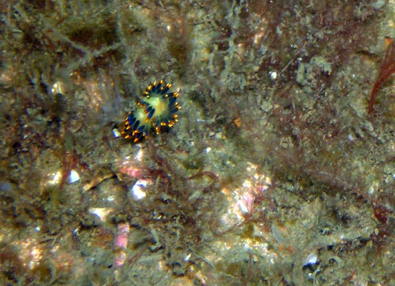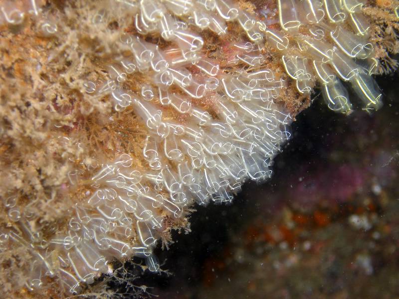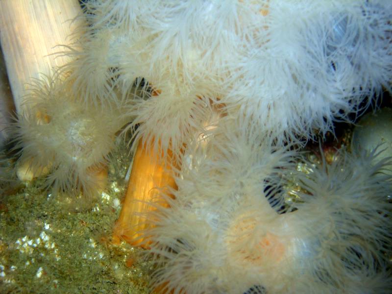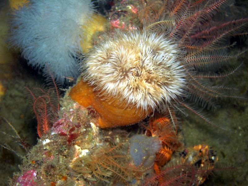 This is right on top of the hull of the Coln and is a plumose anemone with his feeding arms more or less retracted. The anemone in the centre is about the size of your fist.