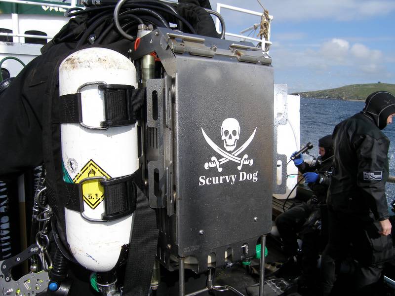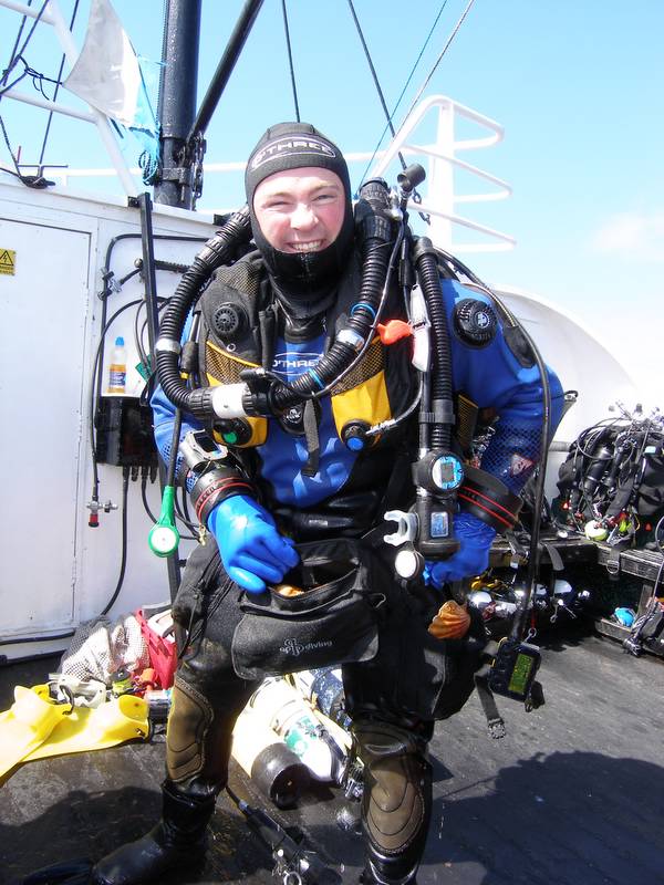 My drysuit was retrieved from under the whaleback, as was a bag with most of the bits and bobs in it. Wing was on top of the freezer, twinset was where it always lives, lead was in the little pile by the compressor, fins were under the hammocks etc etc. Eventually i had the right gear and the worry started – would my bum still fit into my drysuit.....eek.