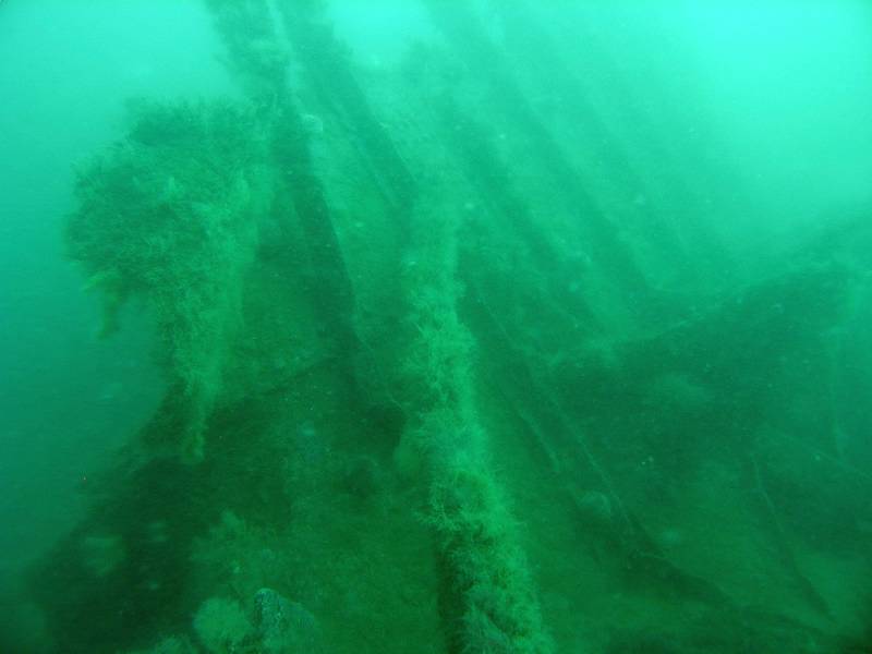 I complete my little faff and pootle off along the top surface of the wreck at around 14m, pausing to look at a hugemungous sea hare grazing on the algae on a flat plate. Dropping down to the seabed at 23m I head aft towards the stern.