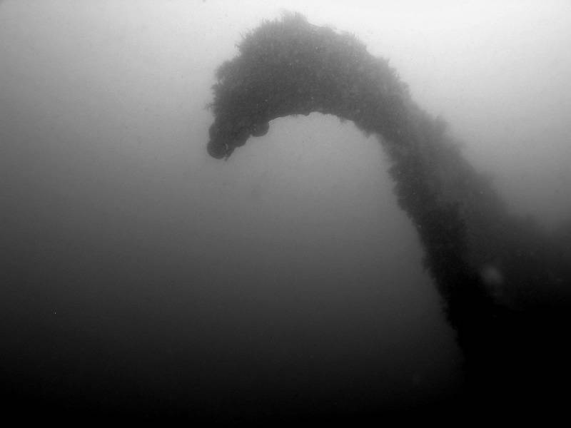 The Karlsruhe is the most broken of the cruisers and the huge sections of totally unrecognisable wreckage rise above me. Poking from the silt is the breech and armour shield of one of her aft guns, well and truly splatted into the seabed. I right to the stern and then back up over the wreck, following a line over the engine room blast access hole. I marvel at how nature has claimed the rope as her own – it is now a mini reef entirely covered in plumose anemones all waving their hair like feeding arms in the underwater breeze. The wreck is almost totally devoid of fish life – one lonely pollack in the distance and the nose of a conger were all i saw until i scared the poo out of a mahoosive cod just forward of the shotline. Seeing me he darted for cover and well out of the beam of my torch and my curiosity.