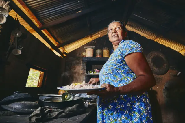 කෑම පිසින කාන්තාවකගේ ඡායාරූපයකි