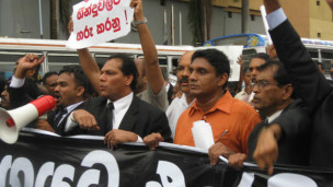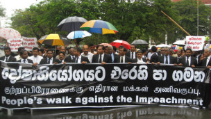 නීතීඥවරුන් අලුත්කඩේ ප්රධාන මාර්ගයට පිවිසීමේදී, අගවිනිසුරුවරිය ඉල්ලා අස්විය යුතු බව කියා සිටි ආණ්ඩු පක්ෂ ආධාරකරුවන් ඔවුන්ගේ පා ගමනට බාධා කල අතර පසුව පාගමන උසාවි සංකීර්ණයේ වෙනත් මාර්ගයකින් කොළඹ කොටුව දක්වා ගමන් ආරම්භ කොට තිබේ.