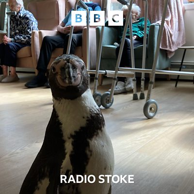 Two Humboldt penguins took their final visit to Hilton House care home in Stoke-on-Trent. Pringle and Widget spent their time sitting on laps and having pictures taken with residents. BBC Reporter Ethan Saunders was there to find out what people made of them.