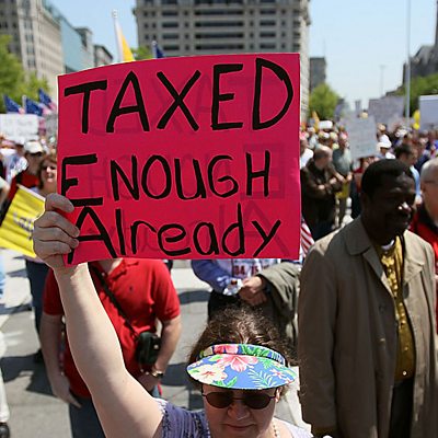 Owen Bennett Jones meets Grover Norquist, Republican strategist and architect of a 'pledge' on tax policy which has tied many Senators and Representatives' hands in recent years. His hostility to federal tax raises has deep historical roots in the USA, but do the numbers really add up? Plus, keen archive hound Vaudine England bemoans the loss of Hong Kong's public records. (Image: A group of US tax protestors, one holds a sign that says Taxed Enough Already, Credit: Getty Images)