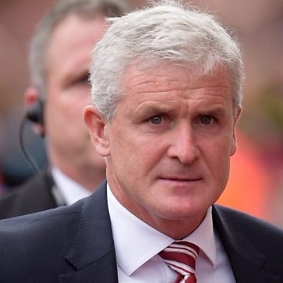 Mark Hughes speaks to Nigel Johnson after a 2-1 win over Swansea City.