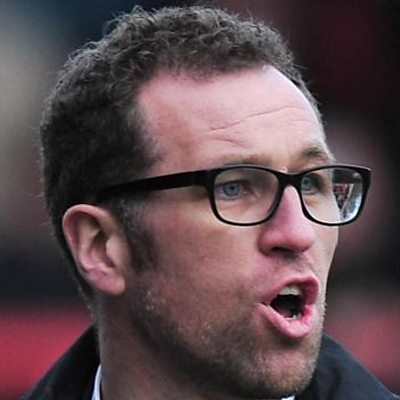 Crewe manager David Artell speaks to Graham McGarry after a 2-1 win over Cheltenham Town.
