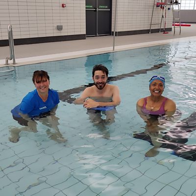 Danny is 28 and can't swim. Babs took him for a swimming lesson at The Dunstable Centre
