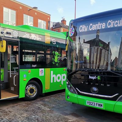 The city council has launched a new bus route called the Hop that will take passengers on a loop of the city centre. It's totally free - but maybe the best part is the buses 'ribbit' as they drive around! David Pittam jumped on board.