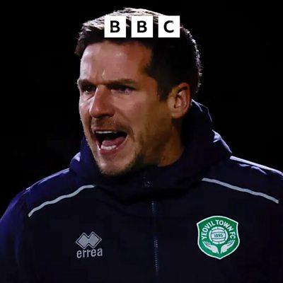The Yeovil Town manager speaks to Josh Perkins after his side beat Morecambe 3-2 at Huish Park in the National League.
