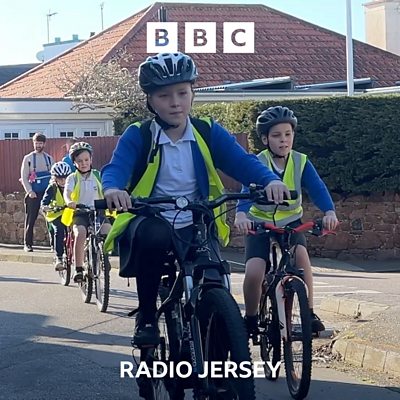 Chris Craddock caught up with the students using a 'Bike Bus' to get to Grouville school.