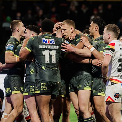 Action and reaction as Leeds Rhinos beat Bradford Bulls at Odsal in first Super League derby since 2014. {Commentary: James Deighton & Barry Eaton}