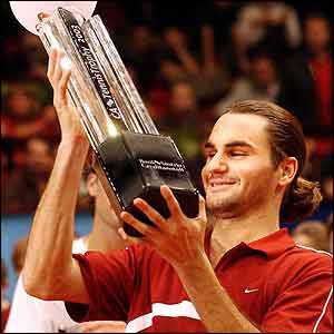 ![]() | Start of the run Roger Federer pounced on some faulty serving by Carlos Moya in the CA Trophy in Vienna in October 2003 and cruised to a 6-3 6-3 6-3 victory. It was the first time he had defended a title and his sixth title of the year. |