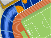 A new development around the stadium includes a swimming pool, running track, and underground parking.